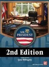 Mr. President is a solitaire game about governing as the President of the United States in the early 21st century. It's not an election game. It begins after you've been elected. It's about sitting in The Chair and trying to advance your agenda while navigating ongoing crises, political enemies, public opinion, your relations with Congress and the press, and keeping your country secure in a world of rival nations and agendas that just seems to keep blowing up around you. Mr. President is a resource management game, where you never have enough resources to achieve your entire agenda, and the path you take through an always unpredictable storyline rests on the choices you make. Depending on the results of those choices, and on the unfolding of a "different every game" story, you'll either be thinking "POTUS? Piece of Cake!" or "Why was it that I WANTED this job?" many times in each game.