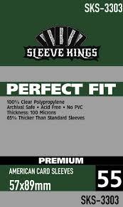 All new "PERFECT FIT" line with 9 new sleeve options! Made from Cleartech™ Polypropylene. 100 Micron thickness, 55 sleeves per pack. These card sleeves are amazing!!