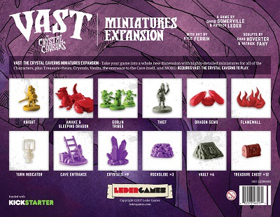 The Miniature Pack for Vast: The Crystal Caverns includes minis for all the characters in Vast as well as the many dangers and spoils you will find in the cave.